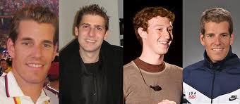 Nas pontas estão os verdadeiros Tyler e Cameron Winklevoss. No centro è esquerda, Eduardo Saverin, à direita, Mark Zuckerberg.